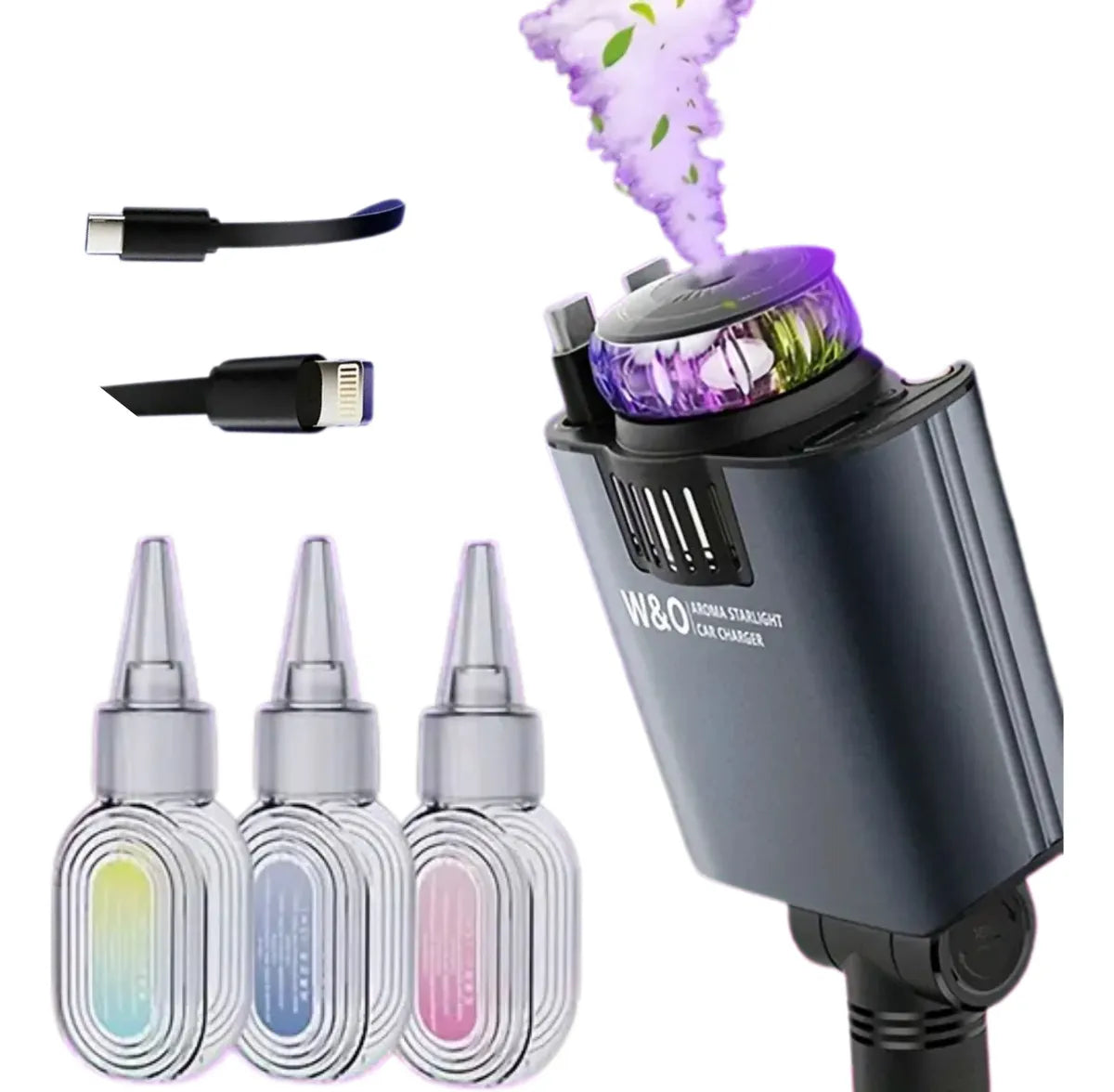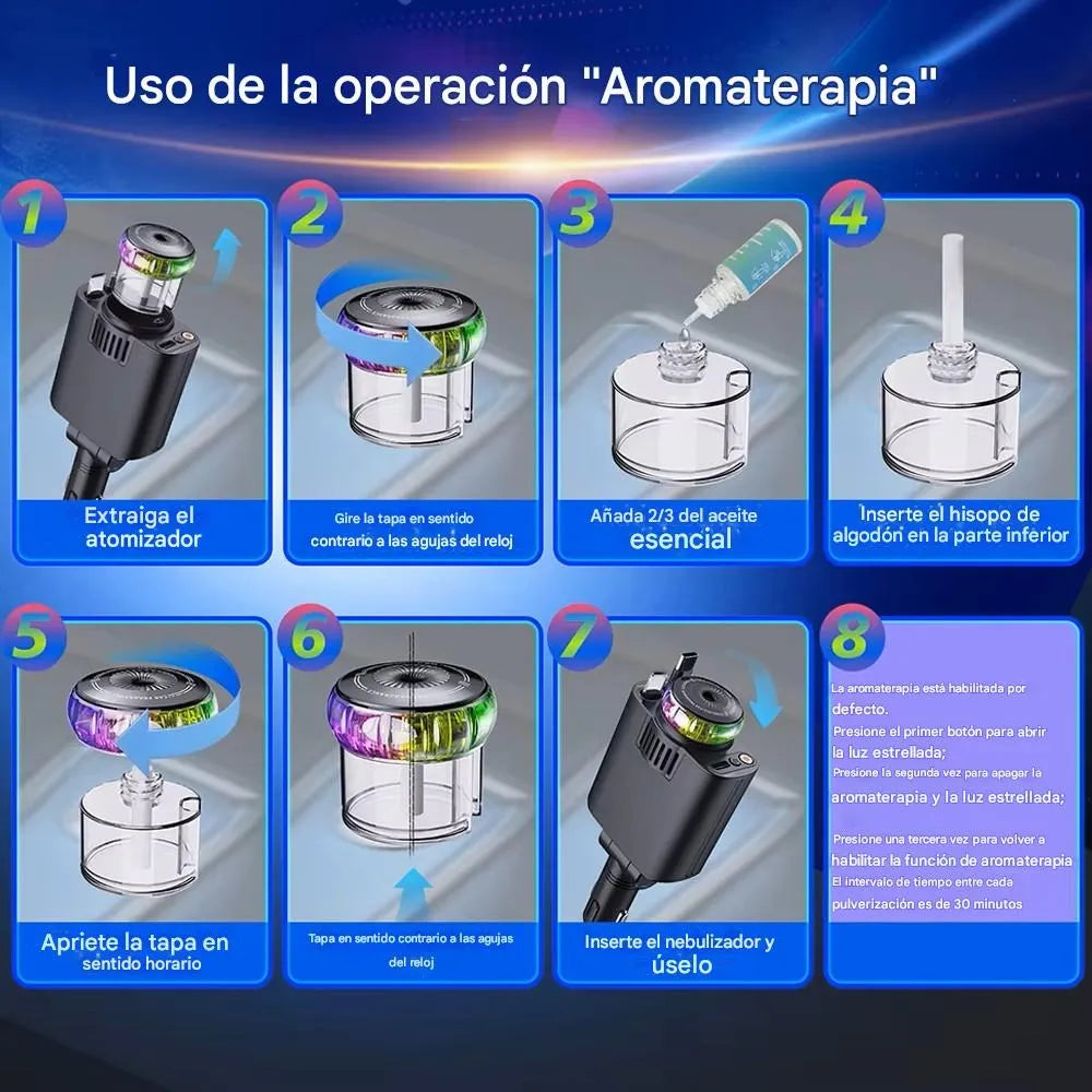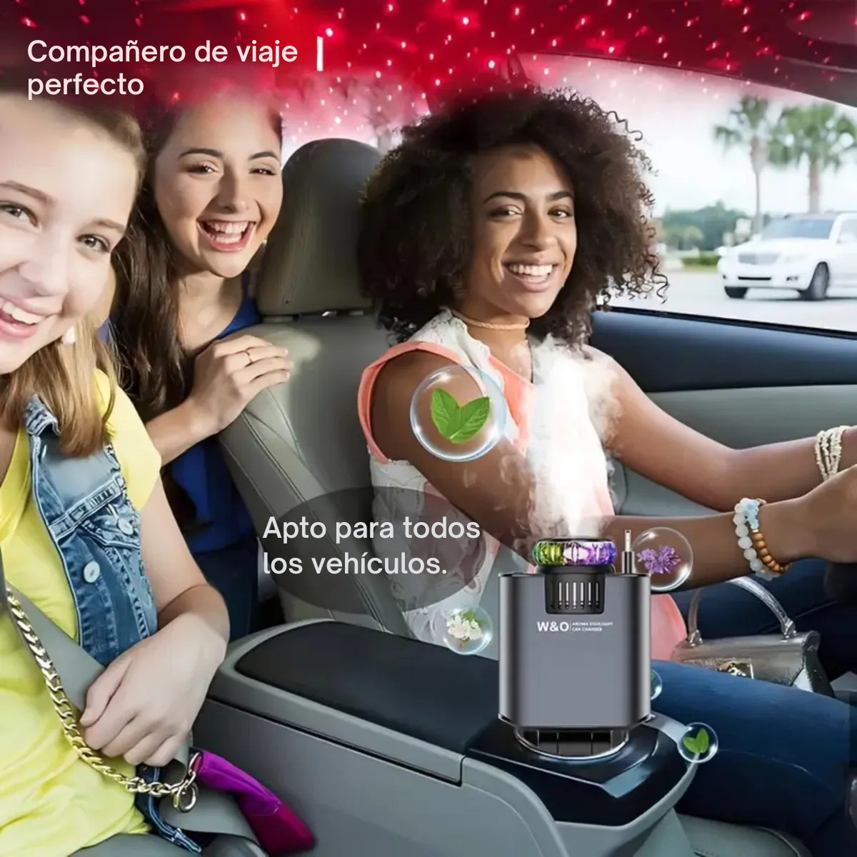 Imagina tu auto ordenado, con aroma agradable, una niebla suave que mejora el ambiente en trayectos largos y una lluvia de estrellas en tu vehículo.