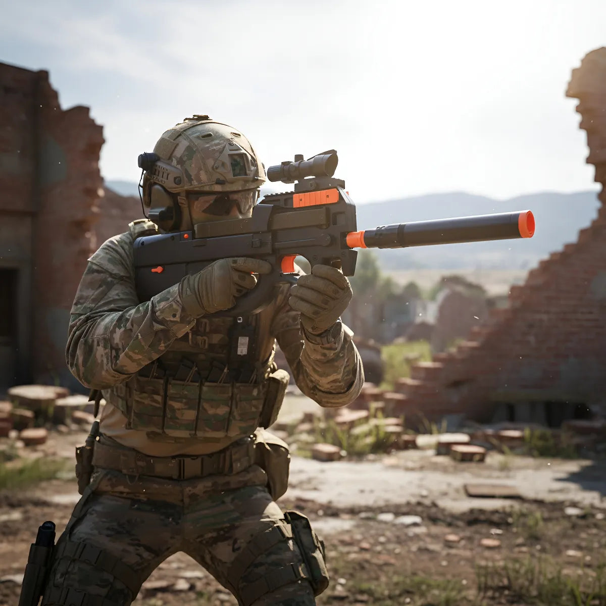*Alcance Efectivo: Con un rango de 15 a 30 metros, es perfecta para juegos en espacios abiertos.