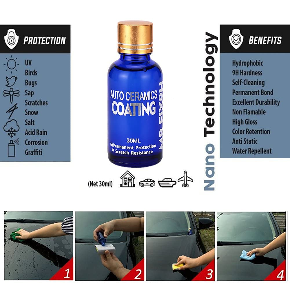 - Contenido: 30 ml (suficiente para un recubrimiento completo en vehículos pequeños o medianos).