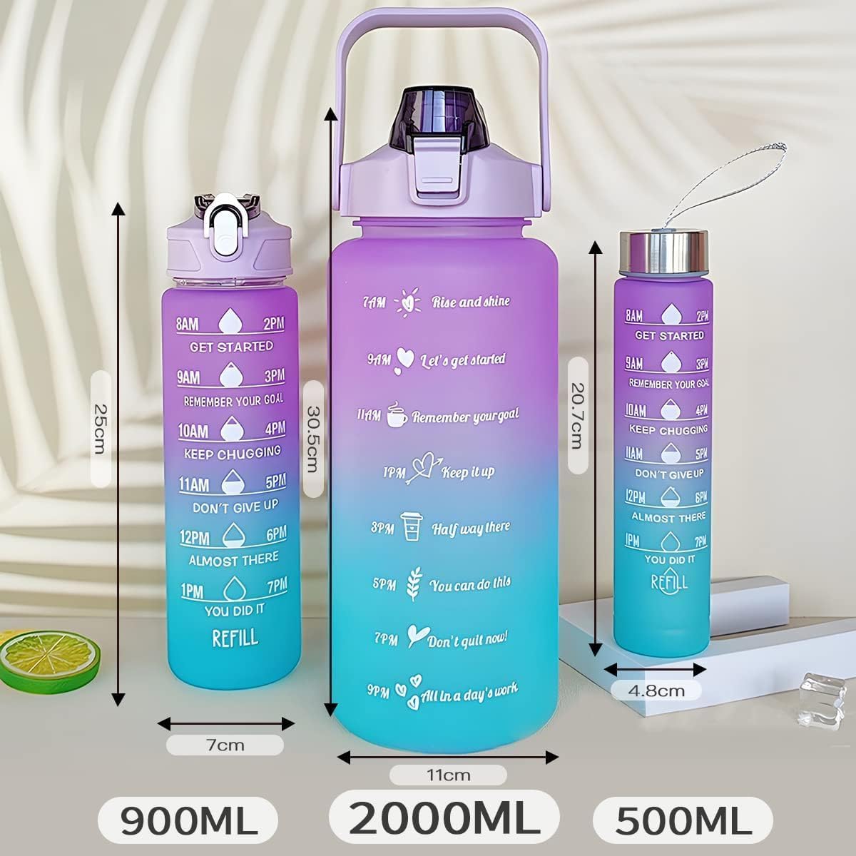 El Termo de Agua Combo Motivacionales Set x 3 Unidades es el compañero ideal para mantenerte hidratado y motivado durante todo el día. Este set incluye cuatro termos de diferentes capacidades, cada uno con un diseño único y motivacional. Los termos cuentan con marcadores de tiempo que te ayudarán a seguir tu progreso y asegurarte de beber suficiente agua. Son perfectos para usar en el gimnasio, en la oficina o mientras realizas tus actividades diarias.