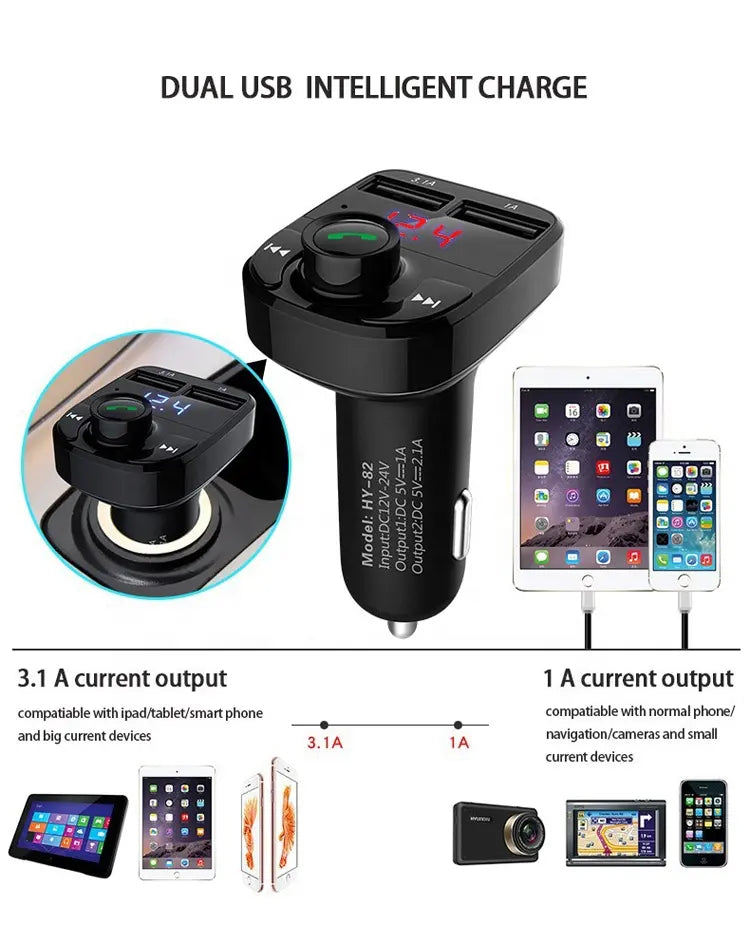 - Compatibilidad Universal: Funciona con la mayoría de radios de carros y dispositivos con soporte para Bluetooth o transmisión FM.