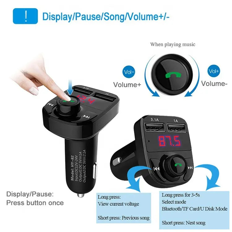 El Transmisor FM para Carro Bluetooth Control Radio es un dispositivo compacto y versátil que te permite conectar tu teléfono móvil al sistema de audio de tu vehículo mediante Bluetooth o FM. Con este dispositivo podrás disfrutar de tus canciones favoritas, hacer llamadas manos libres y cargar tus dispositivos mientras conduces, todo a través de un control fácil de usar.